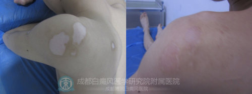 ▲诊断:寻常型局限性白癜风进展期Ⅱ级